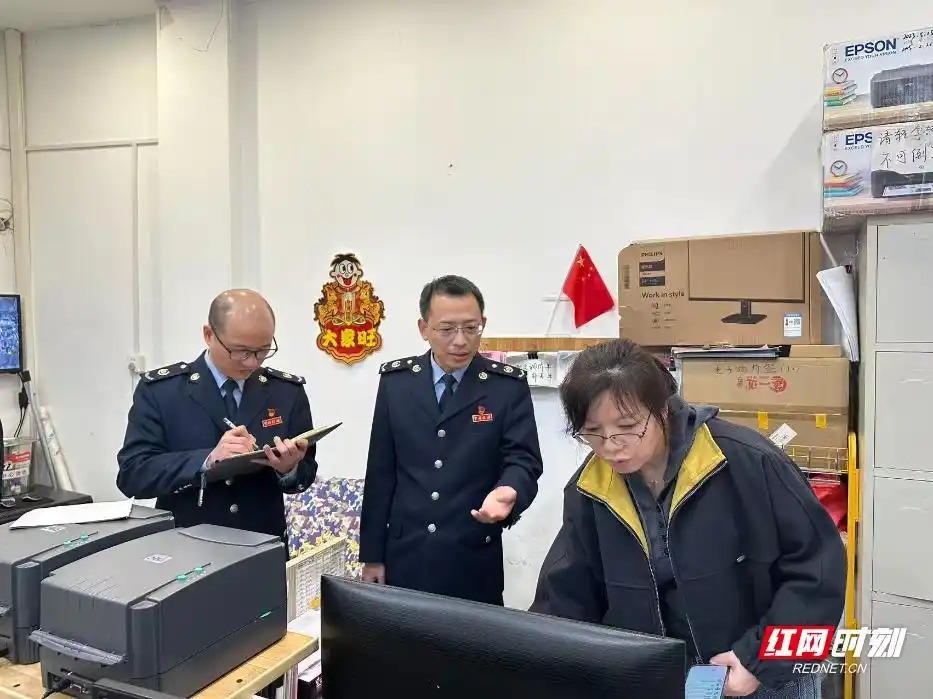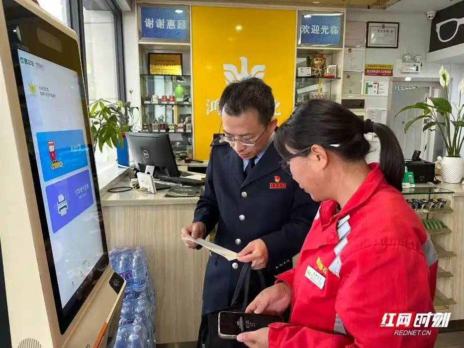 在伍市镇鸿源加油站,团队一行以普通消费者身份,在收银员引导下,先后通过智能开票终端、手机端两种方式,全流程体验数电发票开具、查询、交付等环节。操作过程中,详细询问系统运行、开票效率、消费者使用感受等情况,认真记录操作细节。“数电票上线以后,比以前便捷多了,使顾客们真正实现了‘支付即开票’,不仅提升了消费体验,还帮我们节省了不少人工成本!”该店负责人表示。在伍市镇金尔嘉超市,团队一行走进财务办公室,体验商家端数电发票开具全流程,逐一操作电子税务局登录、身份校验、发票开具、信息确认等环节,感受商户日常开票流程。商超财务人员现场反映,当前通过电子税务局开具发票时,存在多重身份认证、流程环节偏多、系统运行不稳定等问题,一定程度上影响了开票效率,业务骨干团队耐心倾听、细致记录,逐一回应商户疑问。